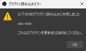OBSを終了して「obs-midi」をアンインストールして、別の方法がないか調べる。