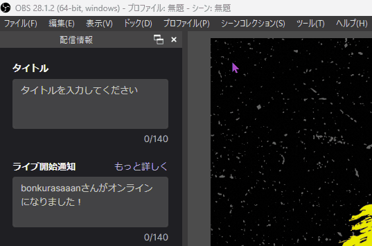 インストール完了後、OBSを起動しても無事起動できたのでここまでは問題なし。