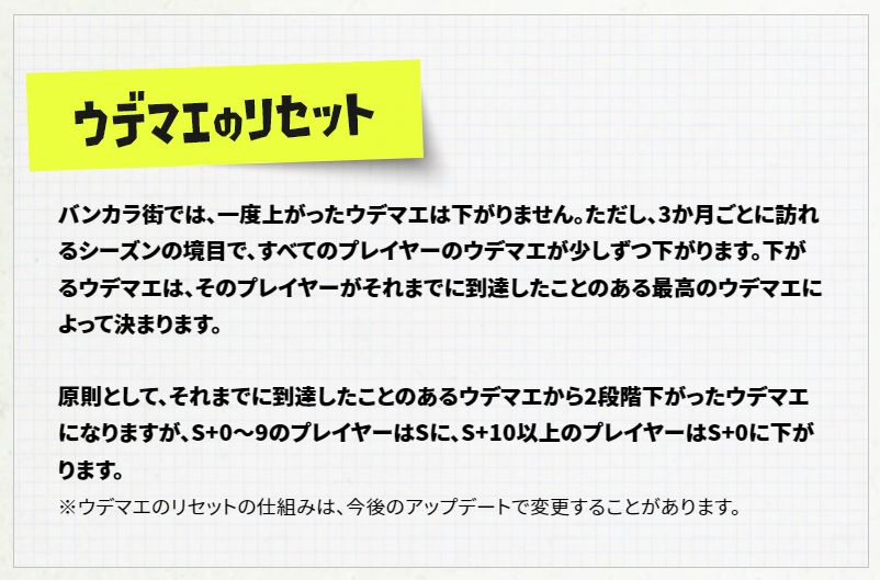 新シーズン開幕時(3ヶ月ごと)にウデマエはリセットされます。
