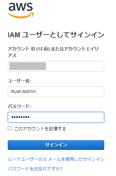 作成したIAMユーザーでログインしてみる