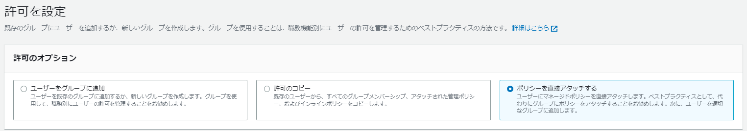 「ポリシーを直接アタッチする」を選択します。